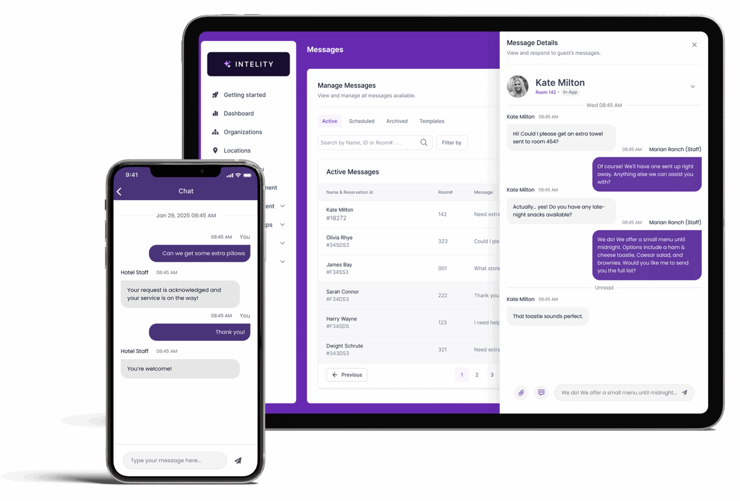 Today’s guests don’t want to call, wait, or chase down information. They want answers now—through the channel they already use. With Intelity Messaging, you give them exactly that: SMS, WhatsApp, and in-app messaging wrapped into one flexible, staff-friendly system.