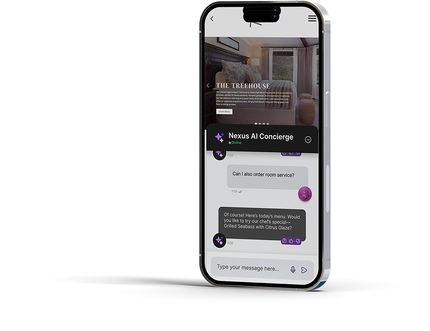Nexus AI Concierge delivers personalized, on-brand guest support on mobile, tablet, and voice. It listens, learns, and responds instantly so your guests always feel valued and cared for.